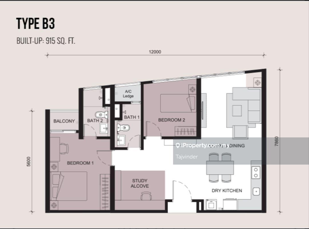 This floor size of this unit is 915 sqft.