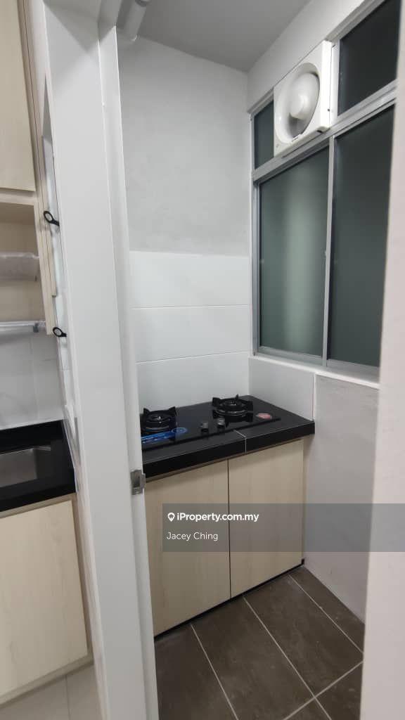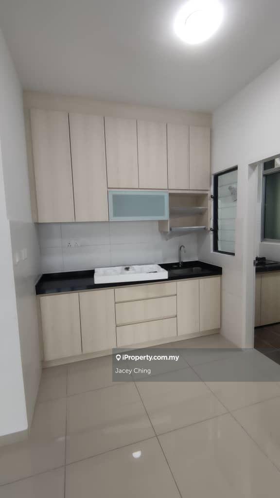 Partly furnished with Kitchen cabinet, Stove, Wardrobe, light, fan, water heater, aircond, etc.
