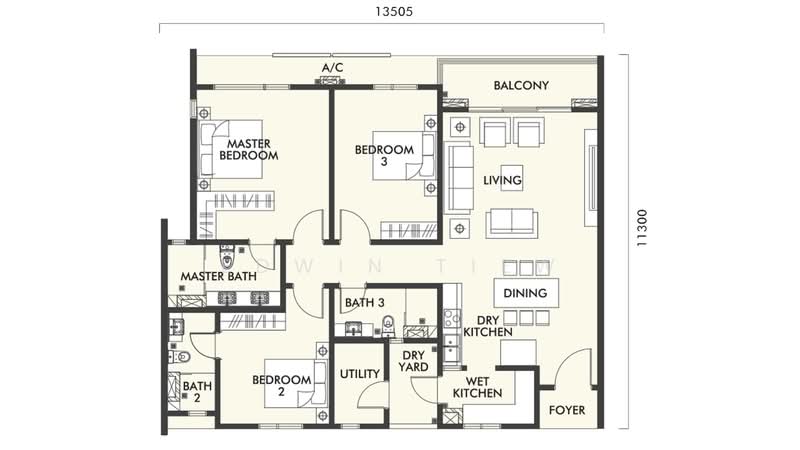 3 rooms 3 bath 1 utility, come with balcony. Built in Kitchen cabinet
