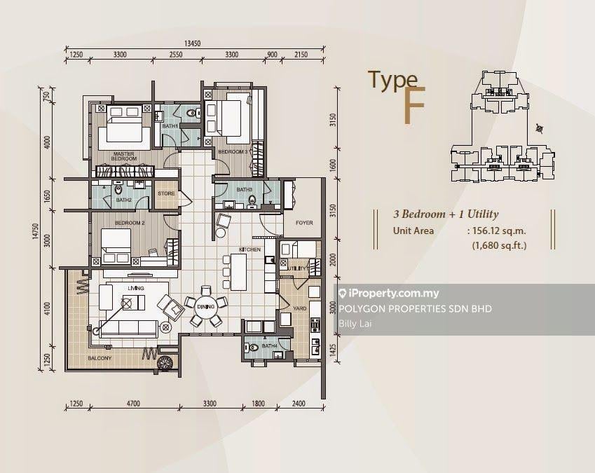 Unit layout : 1,368sqft - 2,685sqft