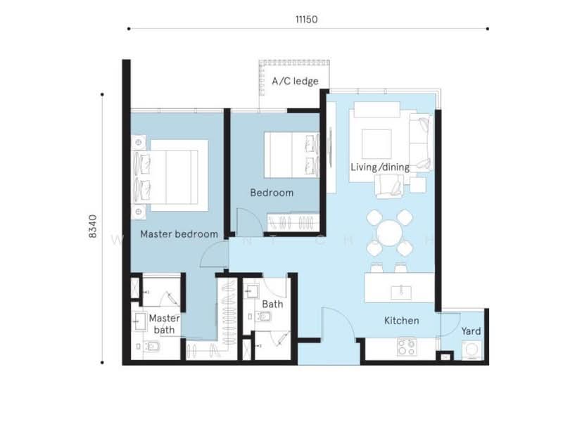- Built-up: 865 sqft