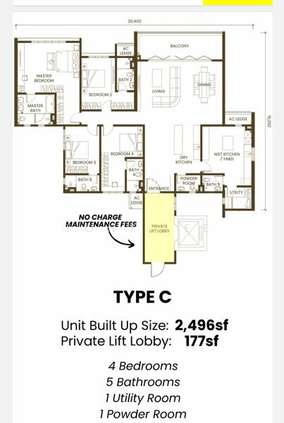 *Extra Space(200-500sf)of Private Lift Lobby Area