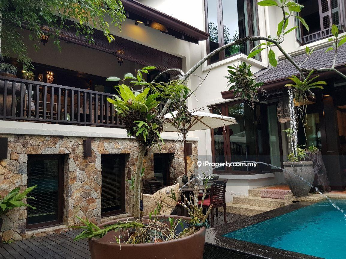 2sty Bglow corner with sizeable swimming pool, beautiful Balinese Resort Design compliments wit rare n unique furnishings items. On higher ground than other neighbourhood, facing open ground at frontage, la 10475sf bu 6600sf, 6+1rooms wit ensuite bathroom.