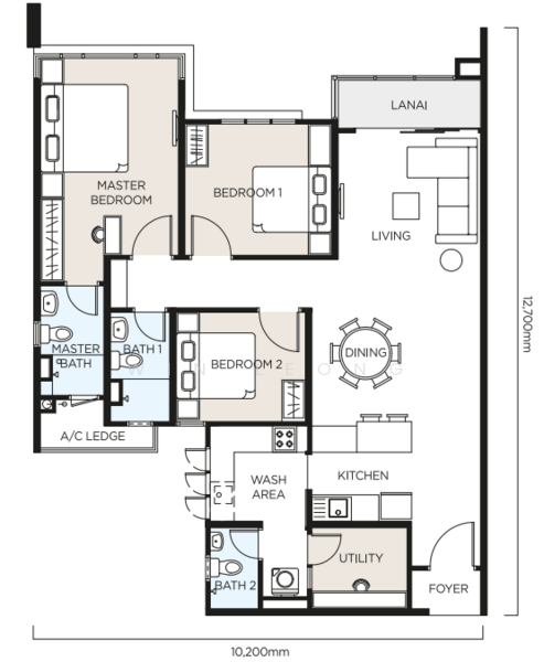 1156sqft | 3+1 Room | 3 Bath | 3 Carpark
