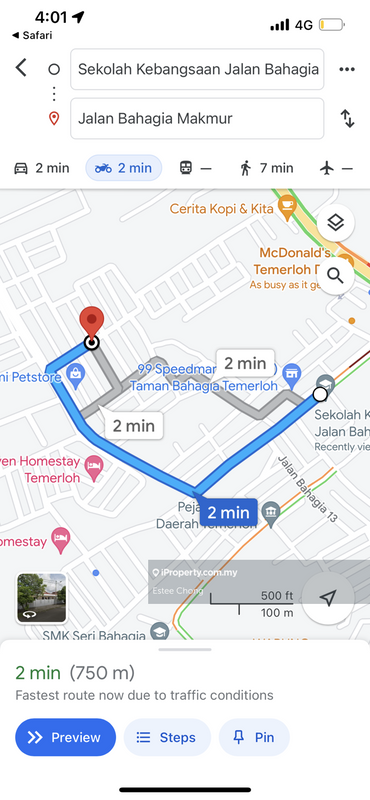 750m /4 mins to SK Bahagia