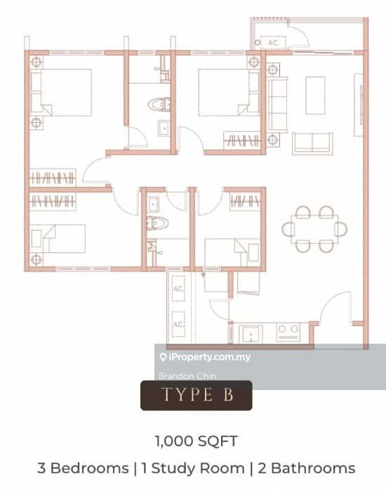 This floor size of this unit is 1,000 sqft.